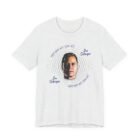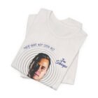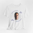 This tee carries a quiet, focused energy — a clean white canvas with a centered photo portrait framed by concentric rings and handwriting-style text. It reads like a snapshot from late-night conversations and introspective playlists: familiar, a little raw, intimate. Lightweight Airlume cotton keeps the shirt soft against the skin and breathable for long days or layered evenings. The crew neck and retail fit make it easy to wear with denim, a flannel shirt, or under a jacket for low-key gigs and meetups. Wear it to shows, listening parties, or when you want something that feels personal rather than loud — a subtle nod to someone whose voice stuck with you.